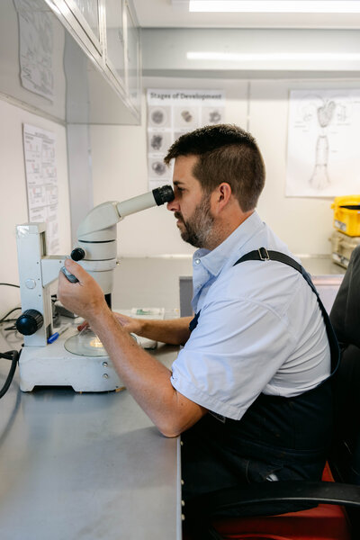 -Seven days after insemination we collect the embryos through non-invasive uterine lavage (washing) and embryos are examined under a microscope for quality assessment. This procedure takes approximately 30-60 mins and is done while the cow is restrained in a chute or similar.